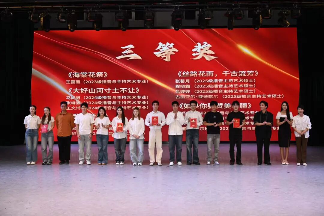 2025年9月17日下午,新疆艺术学院传媒学院隆重举行“声动新疆七十年”朗诵会暨“新艺杯·声动新疆七十年”诵读大赛颁奖典礼,以庆祝新疆维吾尔自治区成立七十周年,迎接第28届全国推广普通话宣传周。本次活动同时也是2024-2025学年实践学期成果的综合展示,学生通过深情朗诵和生动演绎,回顾新疆七十载辉煌历程,展示经济社会发展巨大成就,进一步凝聚团结奋进力量。