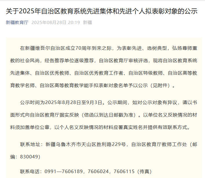 近日,新疆教育厅发布了关于《2025年自治区教育系统先进集体和先进个人拟表彰对象的公示》,我院摄影动画系杨梅教授荣获自治区高等教育教学名师。