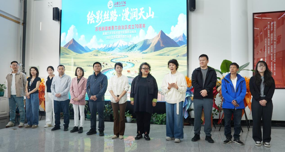 9月17日,庆祝新疆维吾尔自治区成立70周年之际,传媒学院主办的“绘影丝路·漫润天山”摄影动画系实践作品展在新疆艺术学院图书馆一楼开幕,传媒学院领导及师生参加了开幕式。