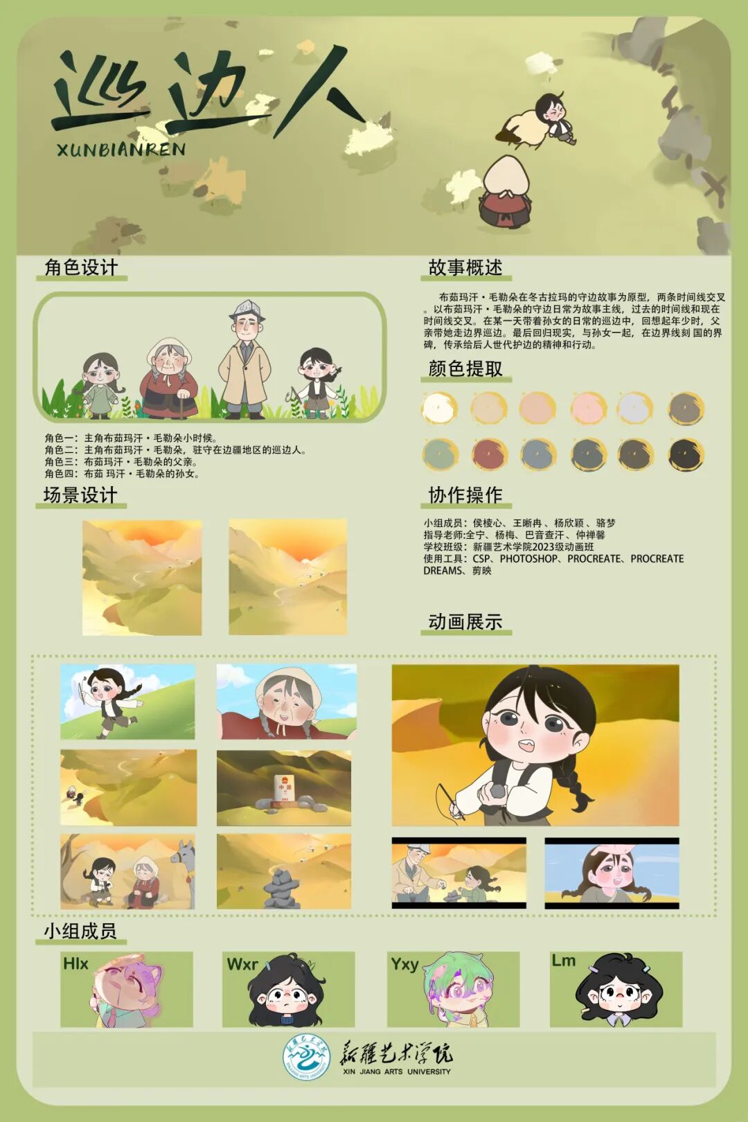 展览的作品中,题材丰富、视角多元,既有《天山下的英雄故事——一炮成功》将历史叙事与智能影像创新融合的AI短片,也有《萌生于戏》、《给列车的证件照》等微纪录片,还有将新疆非遗、红色记忆与现代动画技术融合的优秀动画作品。从《丝路英华录》的英雄之光到《巡边人》的默默坚守,从《祈雨鸭》的文物复活到《胡瓶元宝会》的趣味演绎,他们用数字技术赋予传统文化新的生命力。这些作品既是对中华优秀传统文化的传承创新,也是“文化润疆”在青年一代中的鲜活实践,让千年文脉在影像世界中焕发新生。
