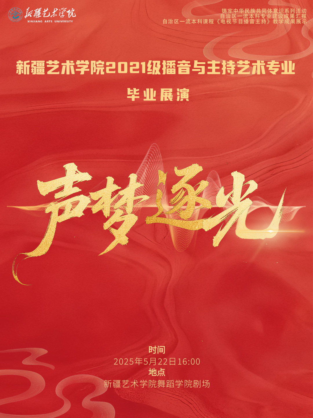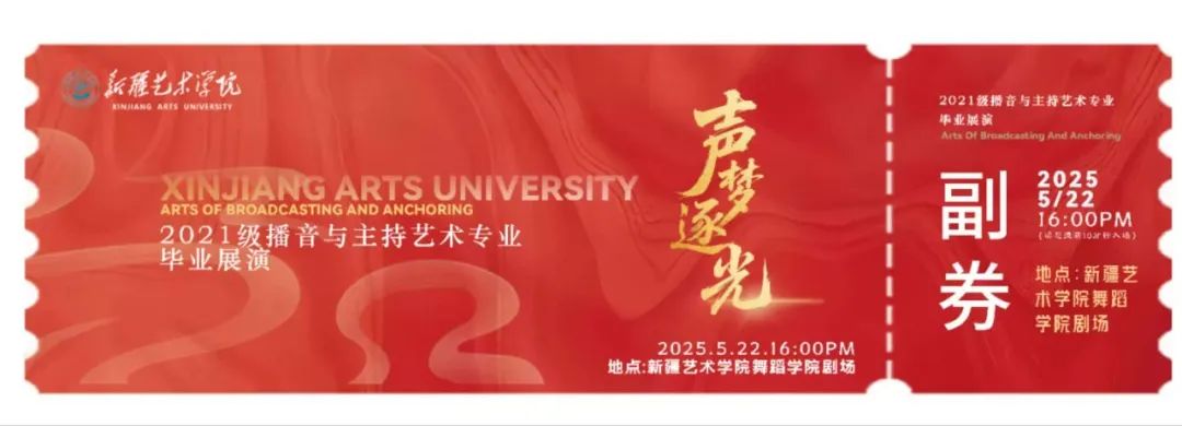 5月22日16:00,新疆艺术学院金桥校区舞蹈剧场,2021级播音与主持艺术专业将以声为笔,书写大学四年的青春篇章!