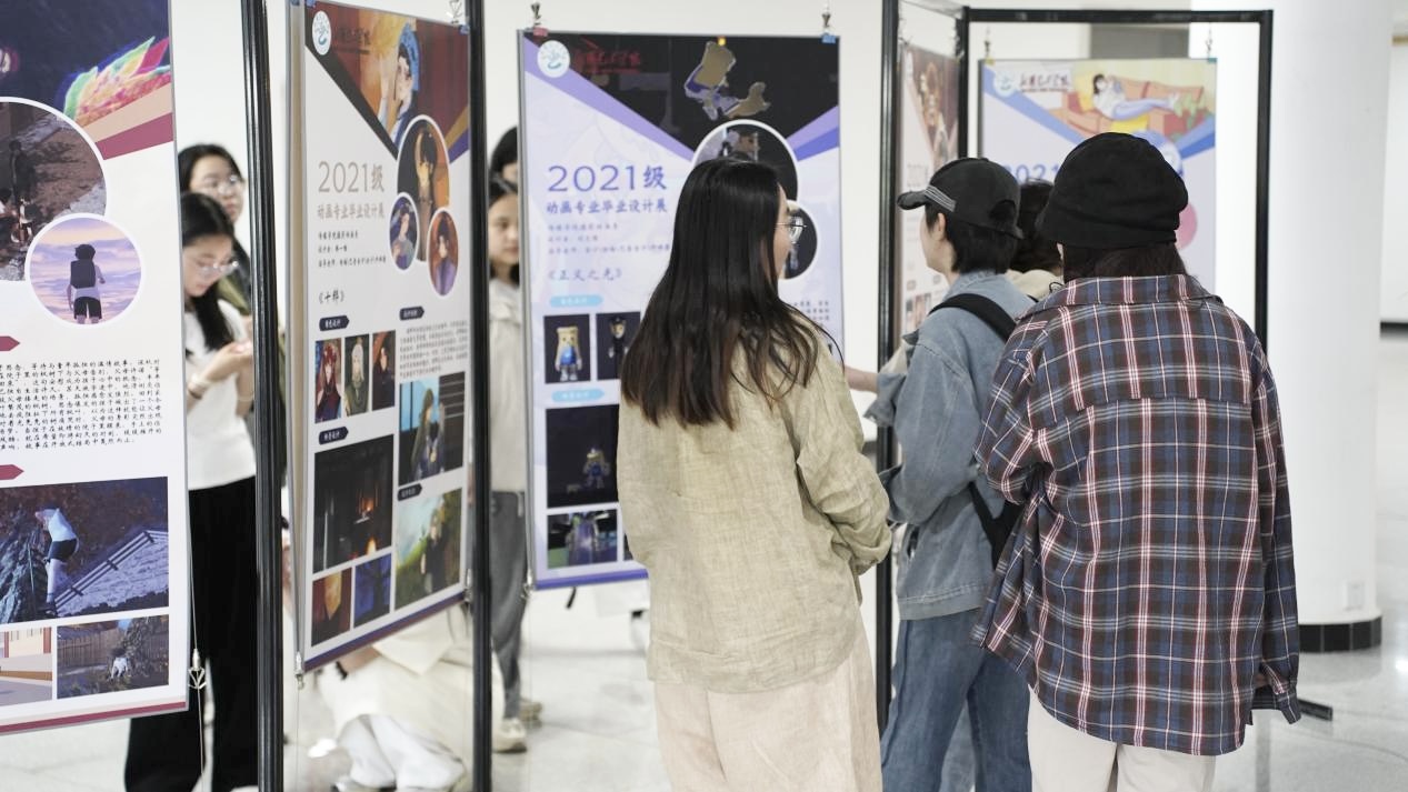 展厅内,动画与摄影两大专业学子以镜头为笔、光影为墨,构建起多维度的艺术场域。此次展览内容涵盖自然风光,人文地理,历史文化,非物质文化遗产等多个方面。类型涉及动画片、纪录片、剧情片、实验短片、AIGC短片。动画专业学生的《出塞》重现张骞凿空西域的豪迈,《赴》借千年胡杨诉说丝路守望,《信》以古今双线唤醒国宝守护的使命。《拔牙记》将成长隐喻融入日常趣事,《美美与共》通过心理障碍少年与新疆女孩的互助,展现民族交融的温情。摄影专业的《丰收之地》再现兵团职工的丰收史诗,《青鸟》以维吾尔少女的丝路寻花之旅,将古迹探寻与奇幻叙事相融合,《回家的路有多远》讲述跨民族夫妻的爱情故事,实验片《蚕》以AIGC技术解构信息茧房,剧情片《阿依博塔》在西部公路叙事中叩问人性。从这些优秀的学生作品中,我们看见的不仅是艺术的突破,更是新疆精神的创新表达。正如策展人所说:“这不是闭门造车的创作,而是把毕业创作写在新疆大地上的生动实践。”