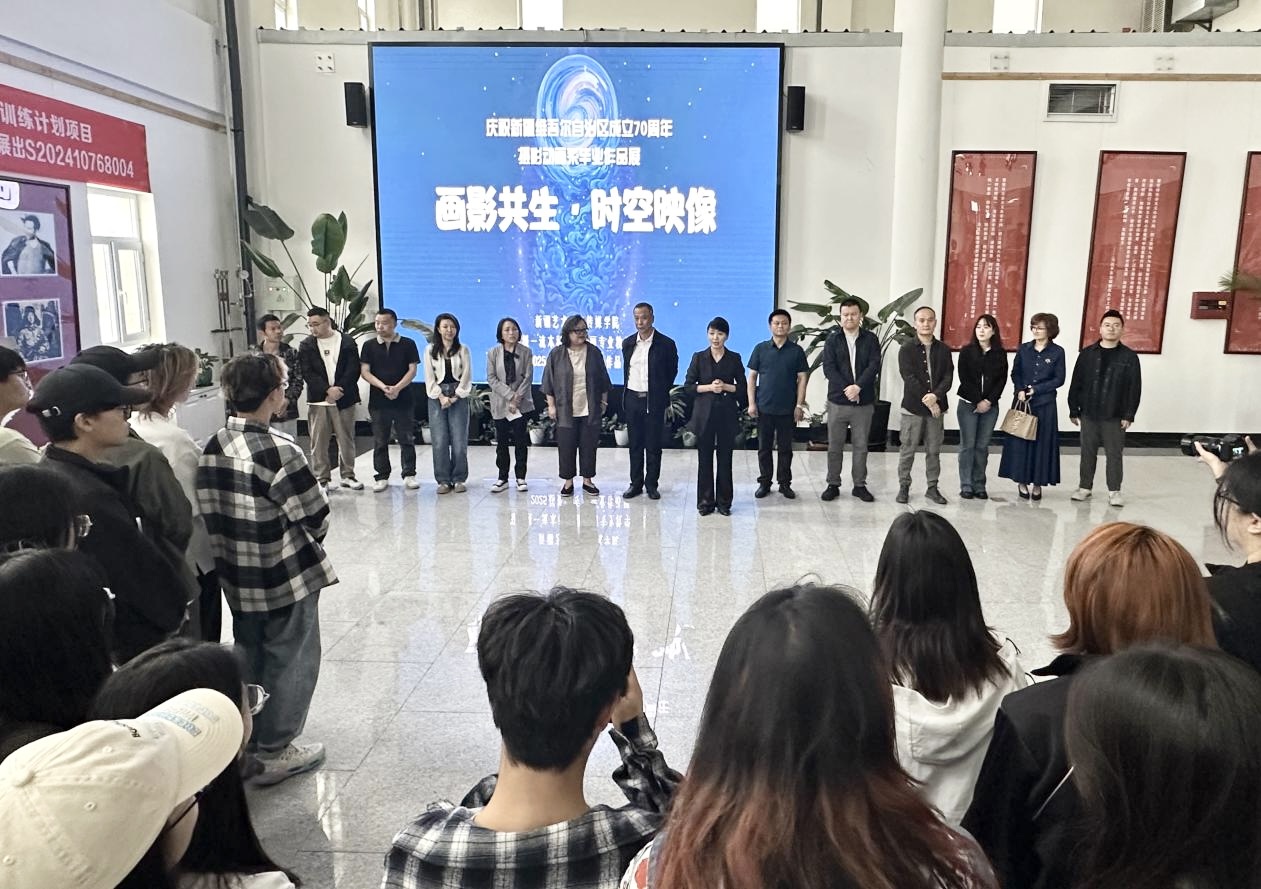5月20日,在新疆艺术学院图书馆一楼,一场别开生面的艺术对话悄然开启。时值新疆维吾尔自治区成立70周年,传媒学院摄影动画系以“画影共生·时空映像”为主题,用40部影像作品与近百幅视觉艺术创作,为天山南北的壮美山河谱写新时代的青春礼赞。