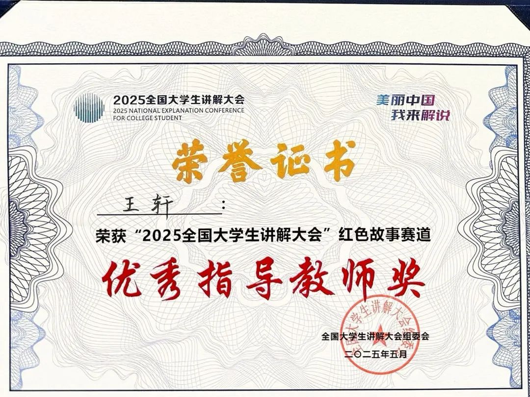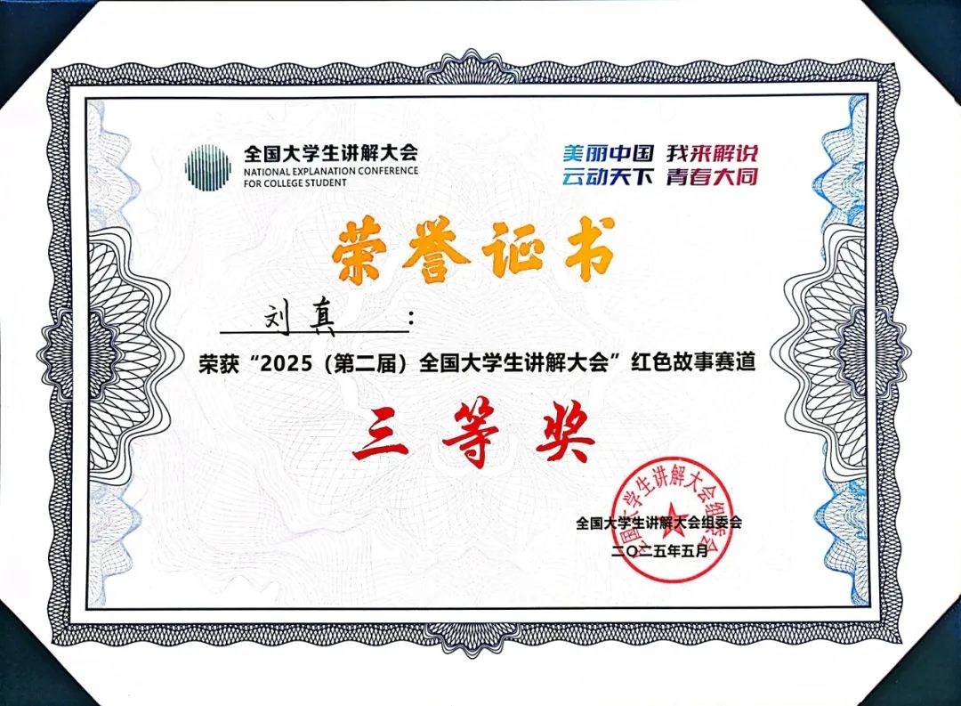 本次大赛面向全国征集作品,共收到来自31个省、自治区、直辖市及新疆生产建设兵团的231所高校提交的2100余部作品。其中,传媒学院2023级播音与主持艺术班刘真荣获红色故事赛道三等奖;传媒学院2023级播音与主持艺术班王一诺、任婧分别斩获文旅赛道、红色故事赛道优秀奖。史文峰、王轩两位老师获评优秀指导教师。