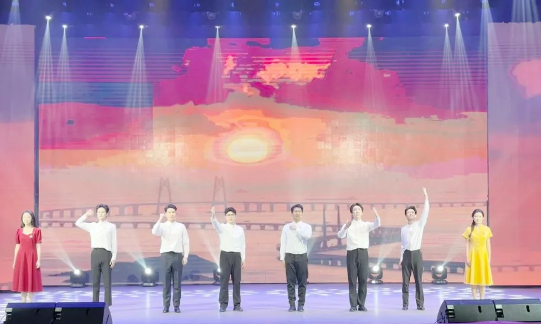 作为大赛特邀表演嘉宾,播音与主持艺术系学子们在颁奖典礼现场闪耀舞台。由刘奕教授指导的朗诵作品《我们的青春》获专家组高度认可,作品以独特视角让“科研理想”与“烽火年代”展开对话,演绎了一场跨越时空的青春接力,生动展现了当代青年的责任与担当,赢得现场观众的热烈掌声与高度赞誉。王轩老师编创情景朗诵《我是谁》(改编自著名诗人欧震《百年交响》)讲述了从嘉兴南湖红船到新时代伟大的发展变化,令现场观众沉浸其中,为之动容,现场掌声热烈。