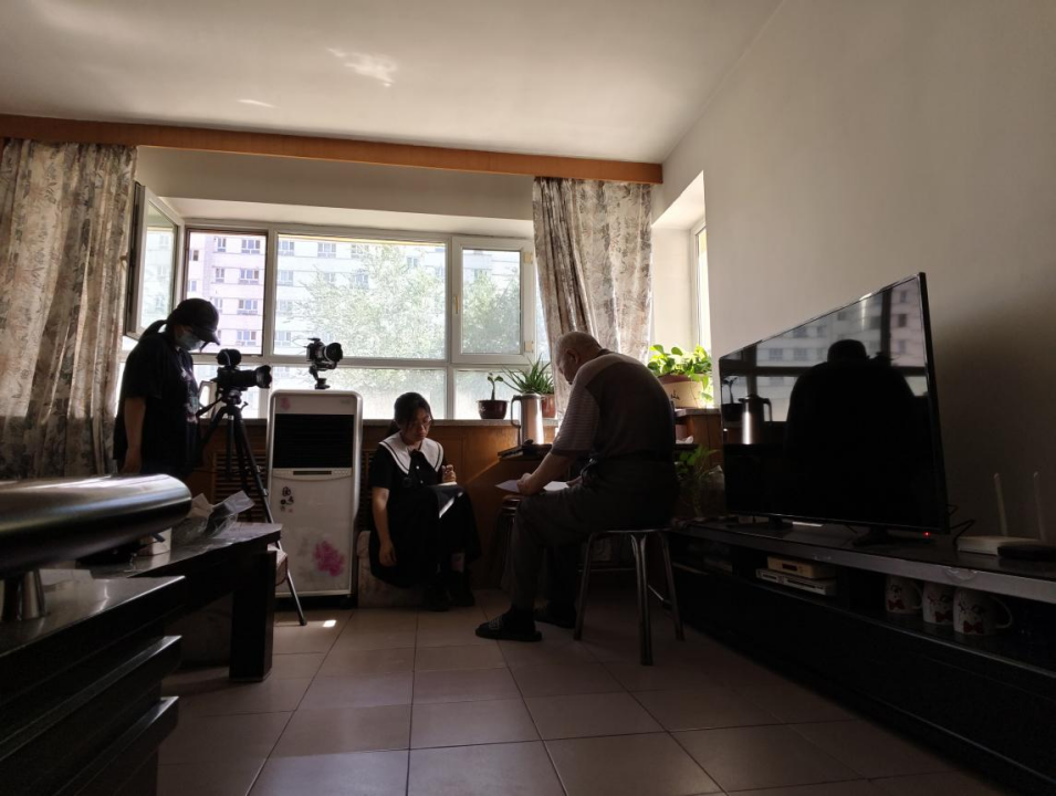 忠贡,87岁,自治区级蒙古族长调民歌传承人。通过走访和与老人交流,同学们了解了吉木萨尔县蒙古长调传承的基本情况。蒙古长调在蒙古语中被称作是“乌日图道”,意即长歌,它的特点就是字少腔长,高亢悠远,舒展自由。在敖包,同学们拍摄了蒙古族传统祭祀文化,大家在敖包前唱起长调的画面令人难忘。采访忠贡老先生时,他拿出厚厚的奖状和照片,讲述背后的传承故事,眼中泪光闪烁。忠贡老人的徒弟、州级蒙古长调传承人巴特叔叔(也是老人的儿子)在蒙古舞授课中唱起蒙古长调,让同学们看到了传承中最重要的元素——热爱。在实践活动中,同学们也深切感受到纪录影像的责任与使命,即传承历史、传播文化、记录时代的重要使命。