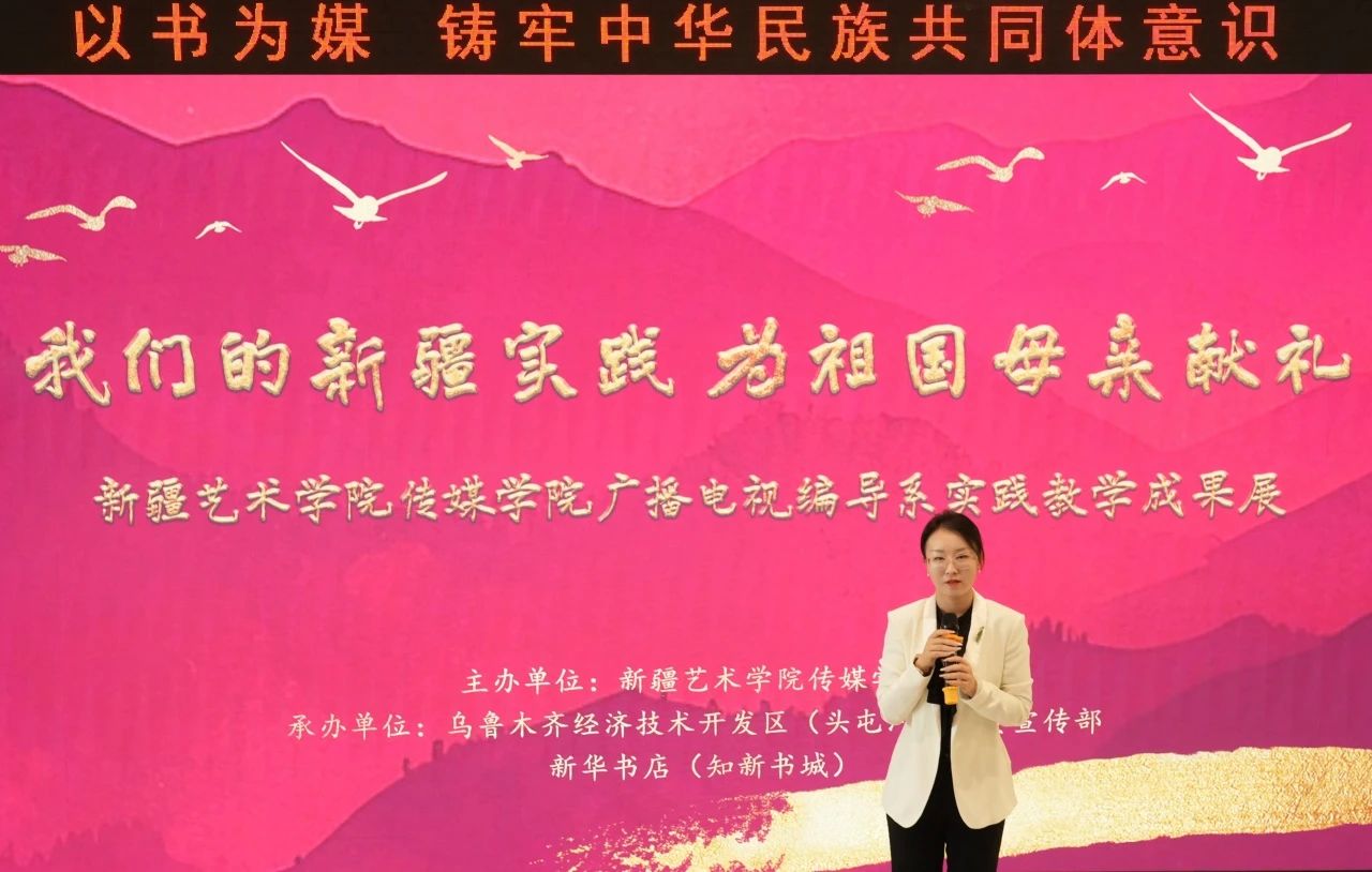 9月11日上午11时,由新疆艺术学院传媒学院主办,乌鲁木齐经开区(头屯河区)委宣传部、新疆新华书店(知新书城)协办的“我们的新疆实践 为祖国母亲献礼”新疆艺术学院广播电视编导系作品展成功开幕。