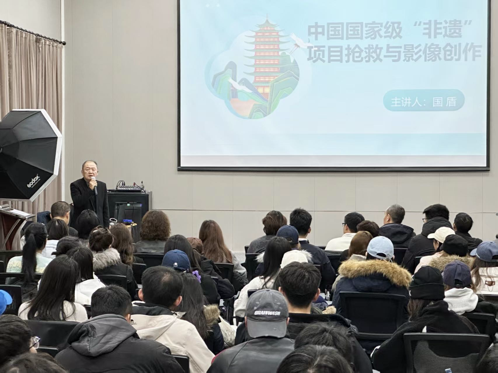 2025年11月5日,新疆艺术学院传媒学院教授、硕士生导师国盾先生应邀开讲——“中国国家级‘非遗’项目抢救与影像创作”。作为中国电视艺术家协会与新疆电视艺术家协会双料会员,国盾教授以田野与讲台并重的深厚履历,为在座师生揭示了非物质文化遗产在影像记录与创作中的独特价值。
