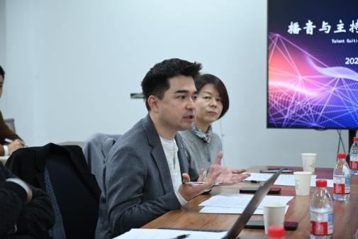的专业教育发展与改革。新疆广播电视台播音指导孙悦、播音指导海米提·买买提、主持人杨洁、主持人罗鸣,兵团广播电视台播音指导李秋玲、乌鲁木齐广播电视台播音指导海潮以及播音系教师参加研讨会。研讨会由播音与主持艺术系主任王轩主持。