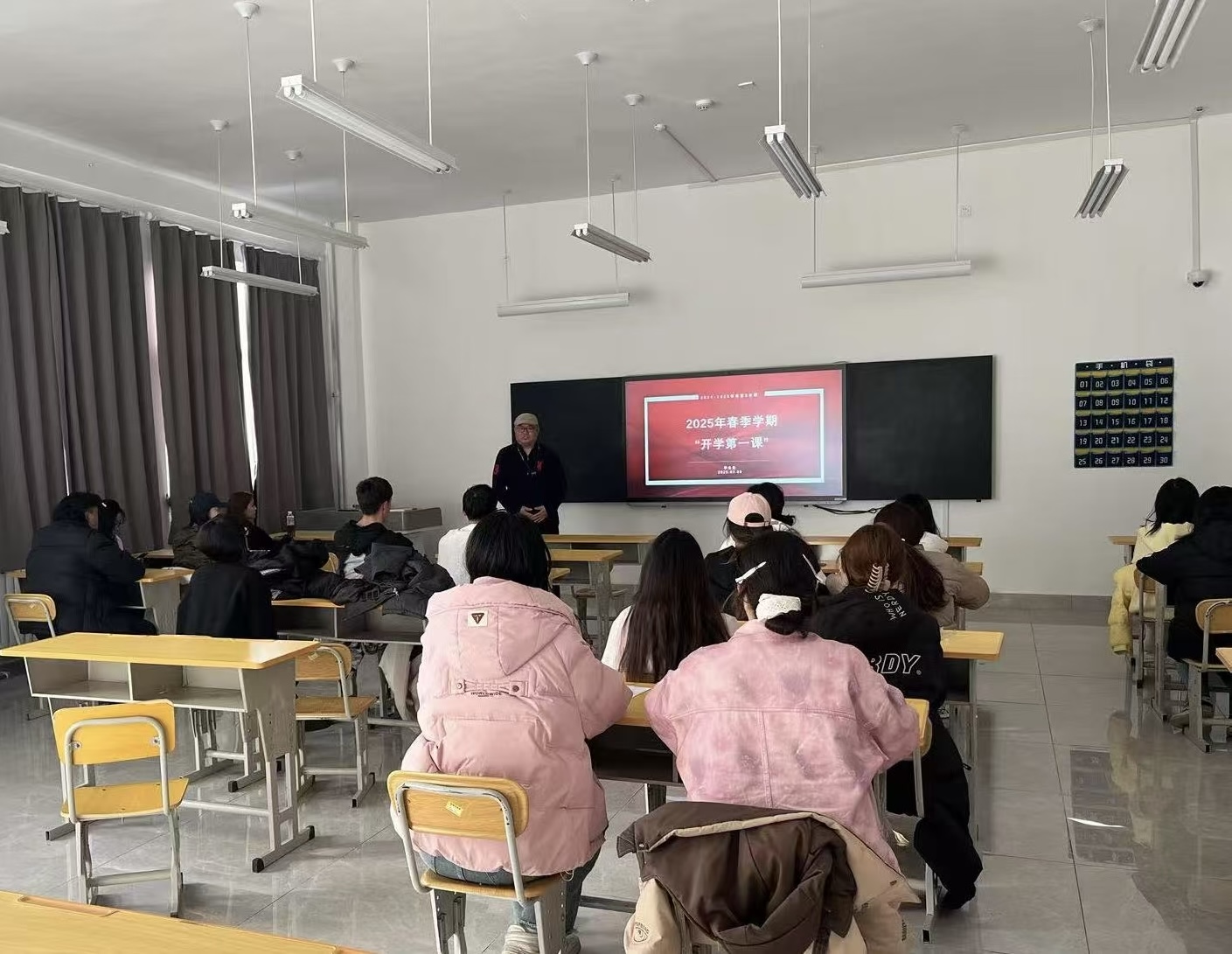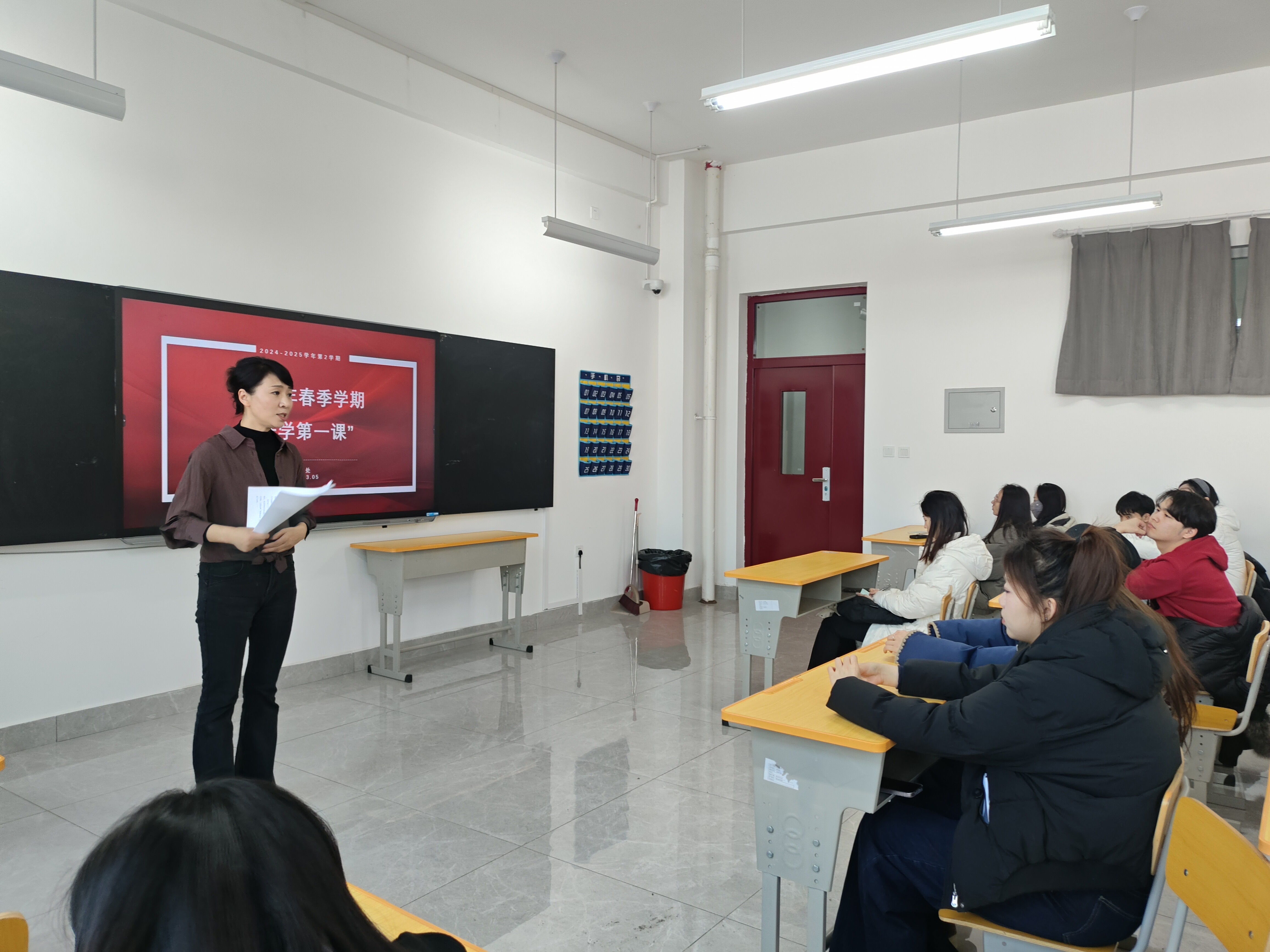2024年3月5日17时,传媒学院各系党支部书记、系主任进班级讲授2024-2025第二学期“开学第一课”。此次活动旨在新学期为同学们的学习和生活注入新的动力,激励同学们以积极的心态迎接挑战,勇敢追求梦想。活动现场气氛热烈,反响积极。