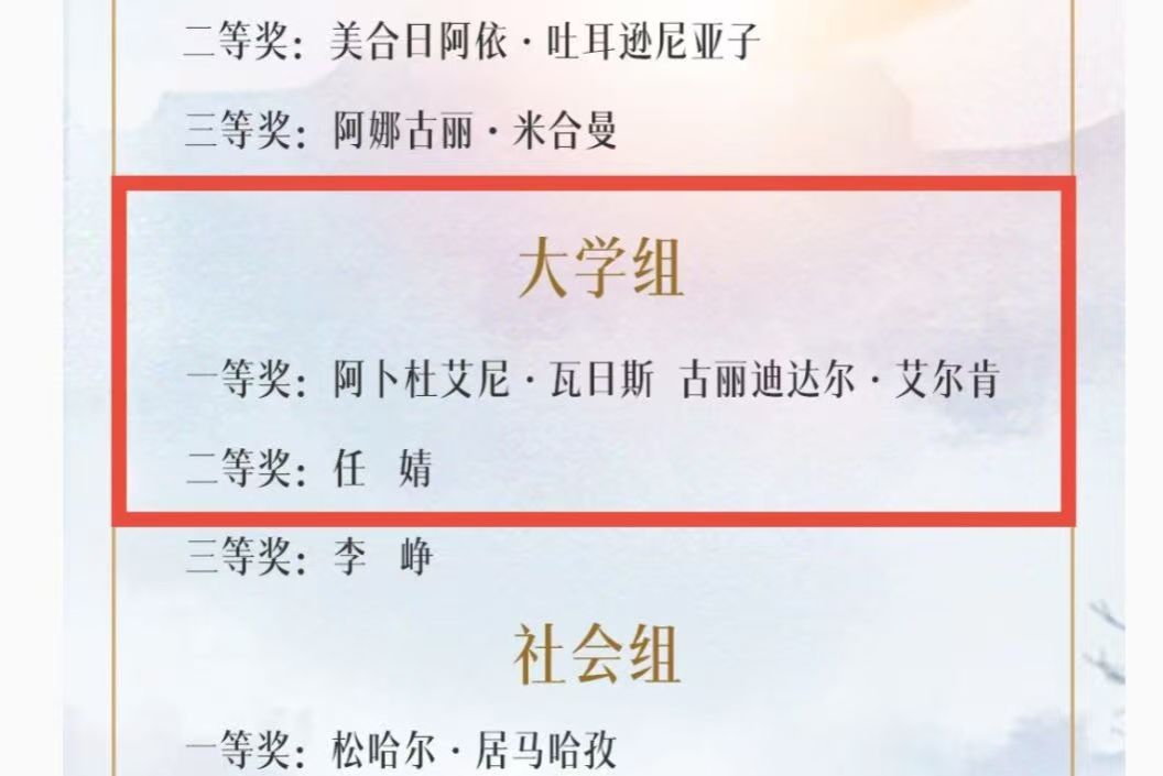 •古丽迪达尔·艾尔肯获大学组一等奖