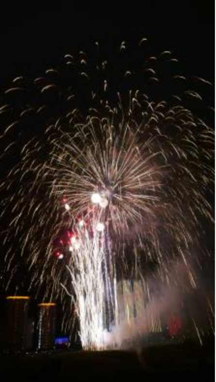 国庆正午,师生团队已到工作岗位就绪。开拍前,再查参数、再拧脚架、再微调一度仰角,只为静候夜幕。20:00,第一束火舌划破长空,快门声与爆炸声同步响起——广角组吞进整座城市的璀璨,中焦组定格每朵花的呼吸,师生把观众的惊呼与亮屏一并收入镜头。几个小时电光火石,零失误,师生用光轨写下一封给祖国的情书。