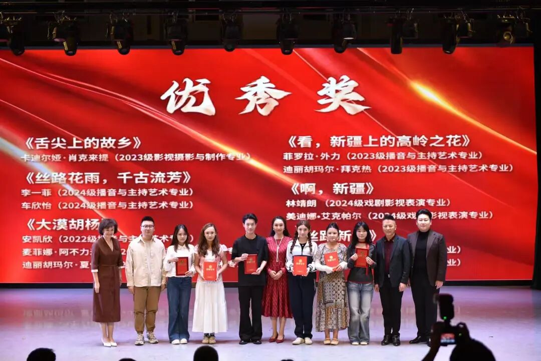 朗诵会现场,播音系学子以饱满的热情和专业的表达,歌颂新疆壮美山河、民族团结和时代新貌,赢得观众阵阵掌声。随后举行的颁奖典礼对大赛中获奖选手的学生予以表彰,充分展现新疆艺术学院在推广国家通用语言文字、传承中华优秀文化方面的积极作为。活动不仅为推普周营造浓厚氛围,也为自治区七十华诞献上了一份有声有色的文化贺礼。