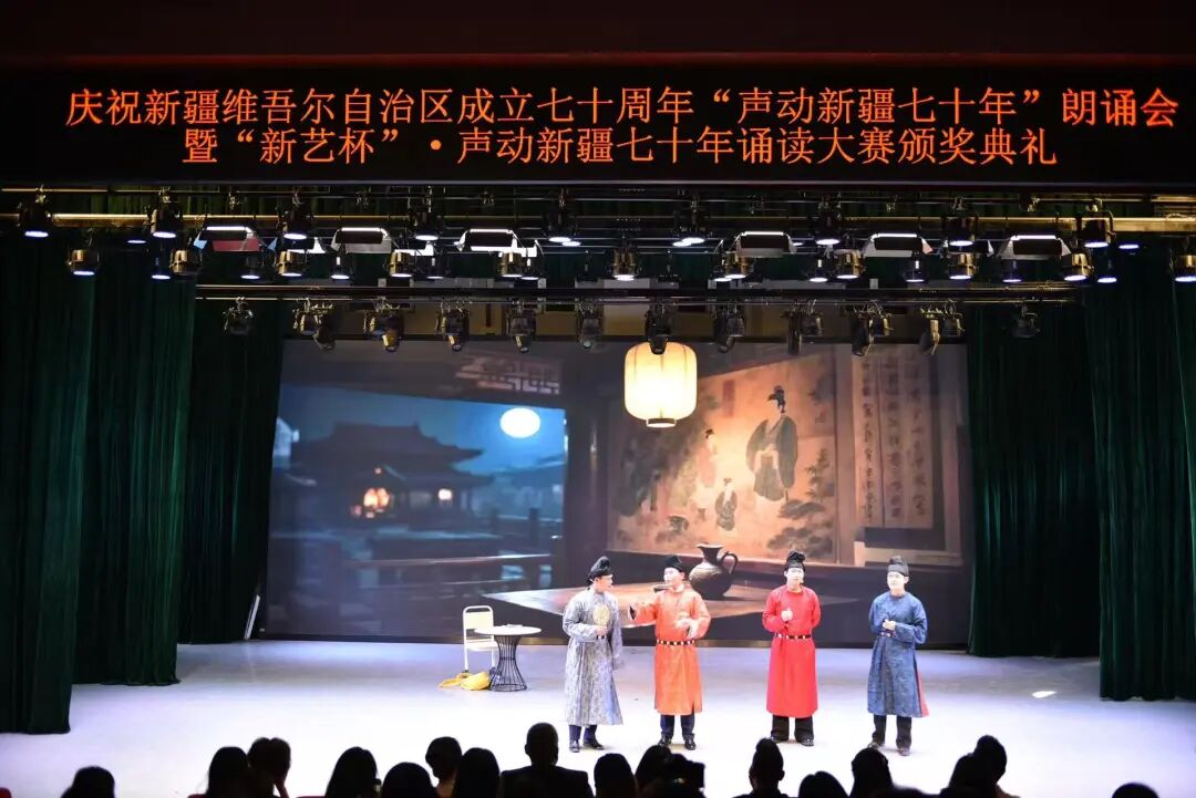 2025年9月17日下午,新疆艺术学院传媒学院隆重举行“声动新疆七十年”朗诵会暨“新艺杯·声动新疆七十年”诵读大赛颁奖典礼,以庆祝新疆维吾尔自治区成立七十周年,迎接第28届全国推广普通话宣传周。本次活动同时也是2024-2025学年实践学期成果的综合展示,学生通过深情朗诵和生动演绎,回顾新疆七十载辉煌历程,展示经济社会发展巨大成就,进一步凝聚团结奋进力量。