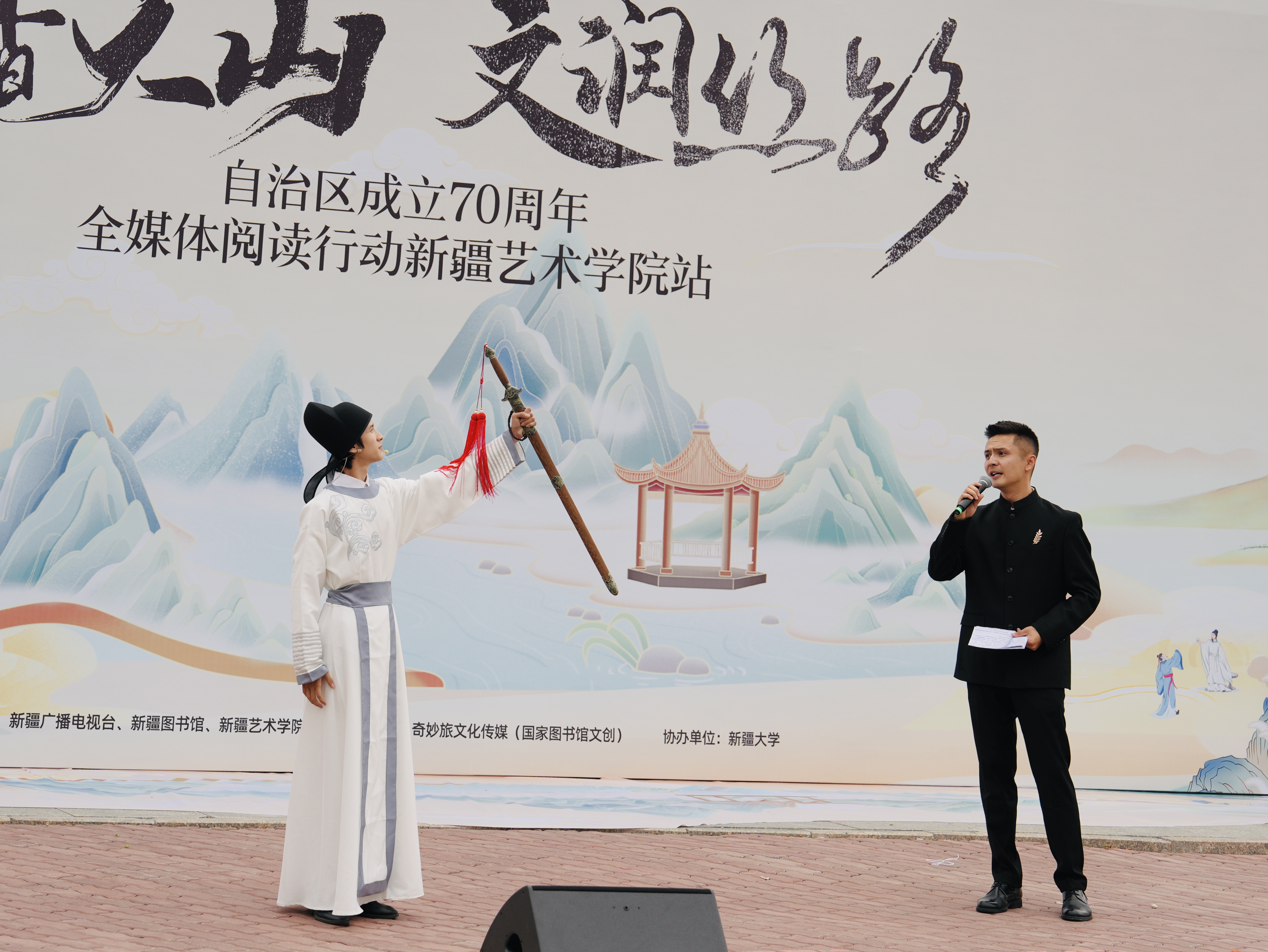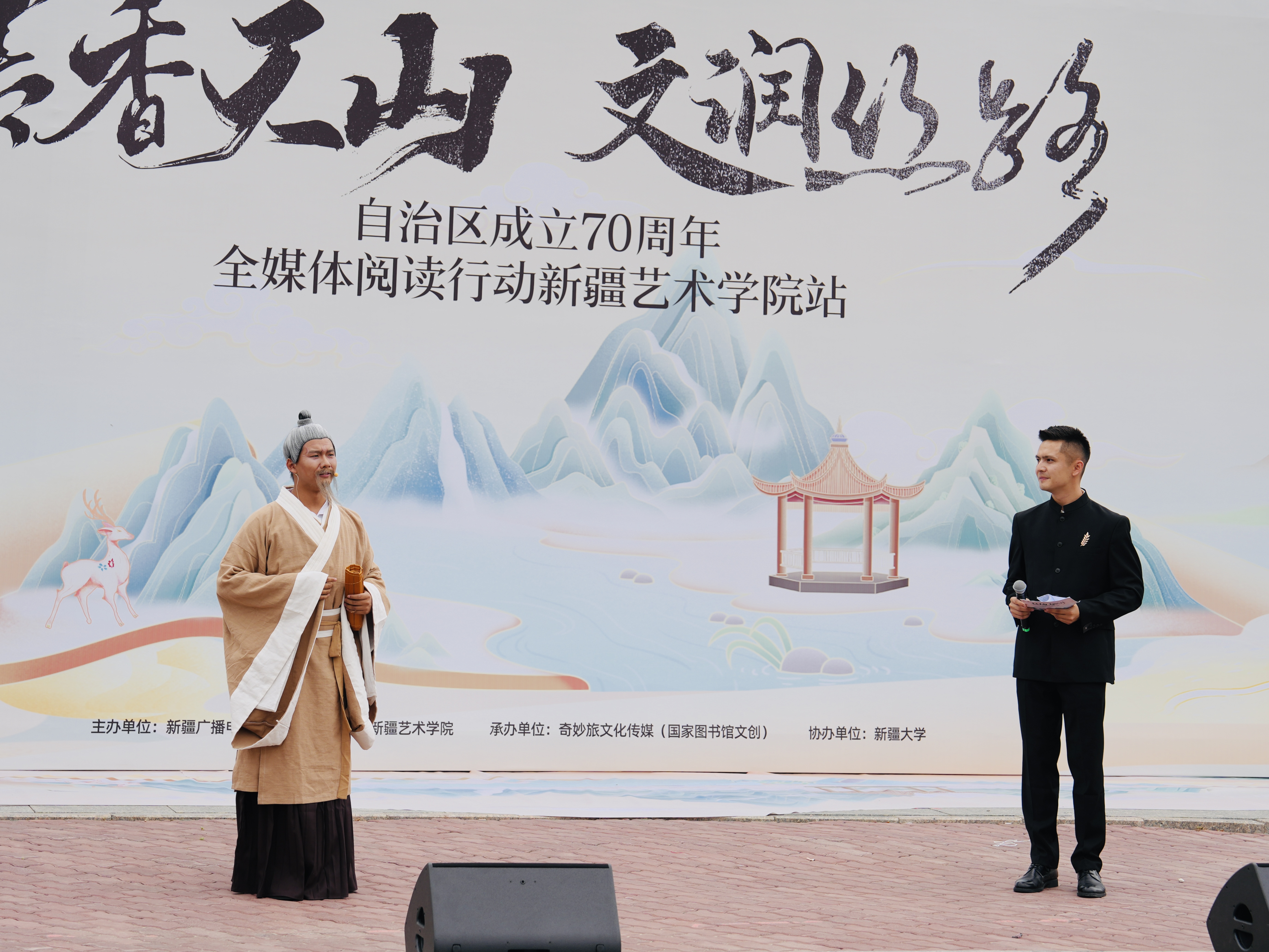 6月26日,由新疆广播电视台、新疆图书馆、新疆艺术学院联合主办,乌鲁木齐奇妙旅文化传媒有限公司承办的“书香天山·文润丝路”全媒体阅读行动在新疆艺术学院成功举办。该活动通过线上线下同步直播的方式,吸引了众多师生和线上观众参与,在诗词诵读、情景演绎与文化体验中,共赴一场跨越千年的文化盛宴。