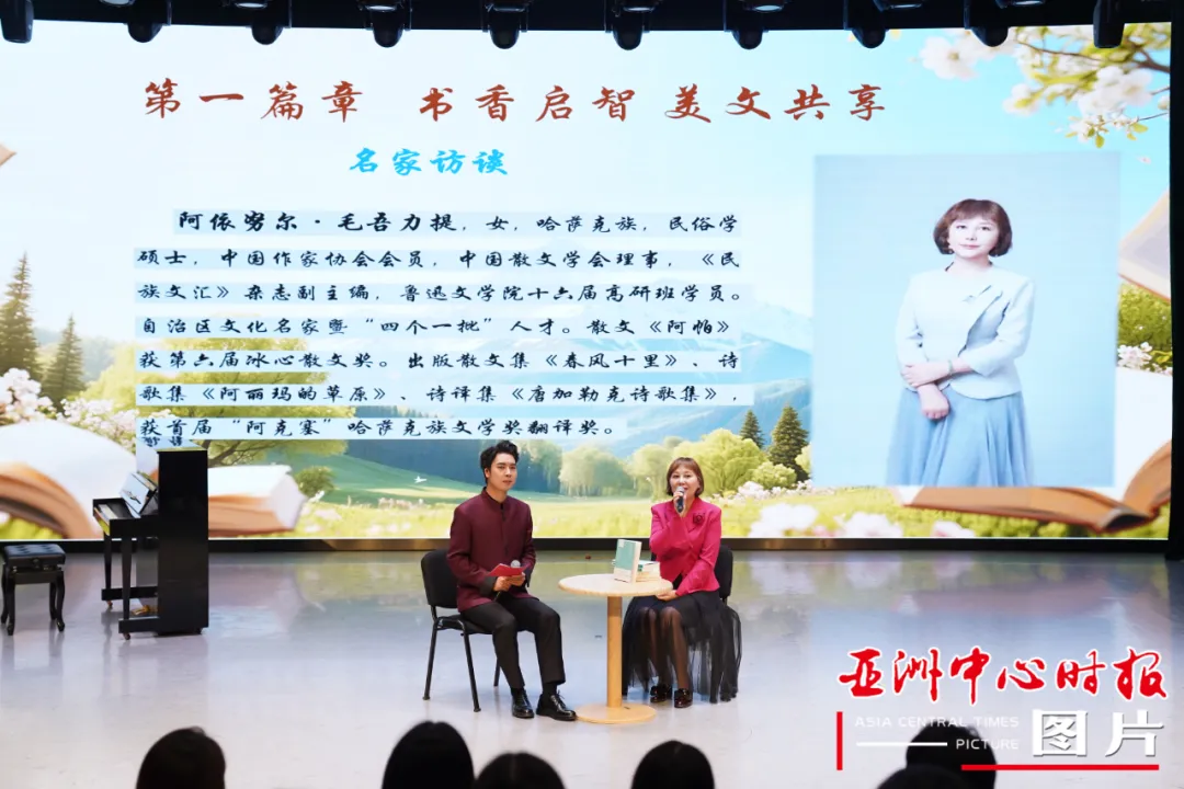 活动特别设置了政协委员和师生的互动环节。新疆艺术学院传媒学院学生深情朗读了散文《阿帕》和小说《白水台》选段。这两件作品的作者阿依努尔·毛吾力提叶尔克西・胡尔曼别克也来到现场进行了一场“微访谈”,与学生们交流创作感受。