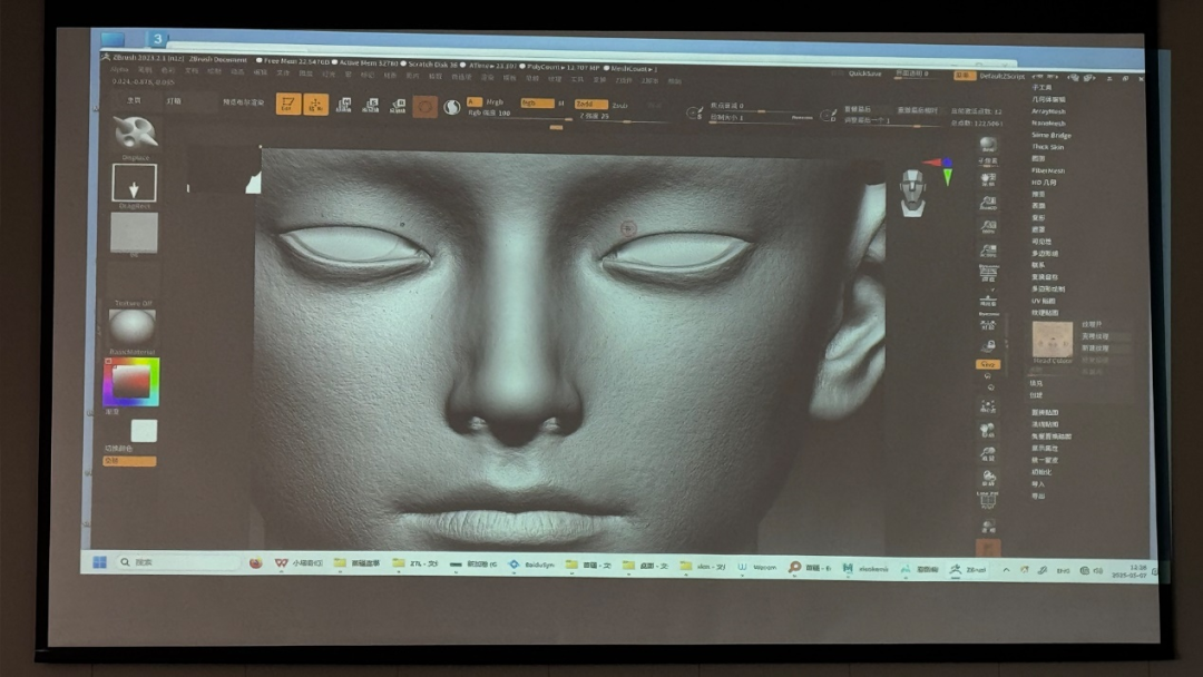 渲染结束后,缪雪峰老师并没有停下脚步,而是继续深入,为同学们讲解了如何在 ZBrush 软件中对人物角色进行毛孔映射处理。