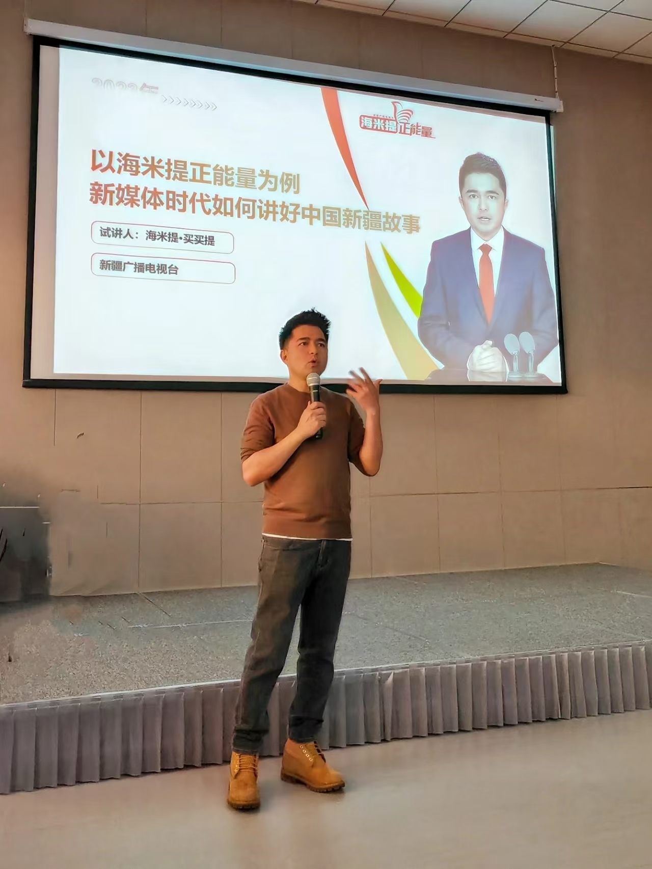 11月21日下午,中国播音与主持艺术领域最高奖项金声奖的获得者、我校2008级播音与主持艺术专业的优秀毕业生、新疆广播电视台的著名节目主持人海米提・买买提,凭借其独特的个人魅力与深厚的专业素养,为师生们呈上了一场主题为《新媒体时代如何讲好中国新疆故事》的精彩讲座。