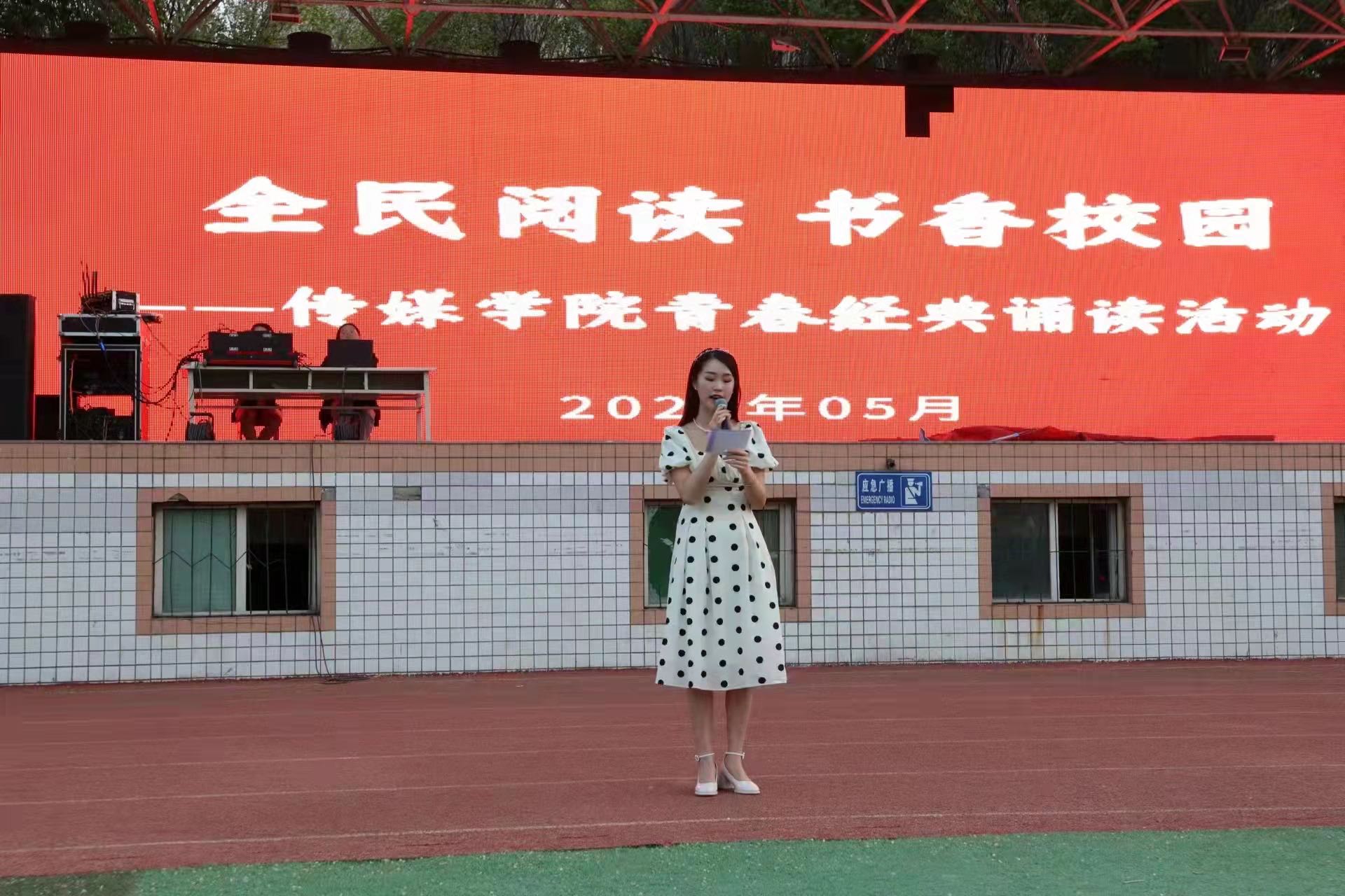5月3日,传媒学院在学校操场举办了“全民阅读 书香校园”青春经典诵读活动。2021级播音班《永不消失的声音》,2020级播音班《光的赞歌》以及2019级播音班《青春恋歌》等涵盖了红色经典、礼赞楷模、大学青春、热爱春天主题的15部诵读作品(含原创)在此次活动中展出。