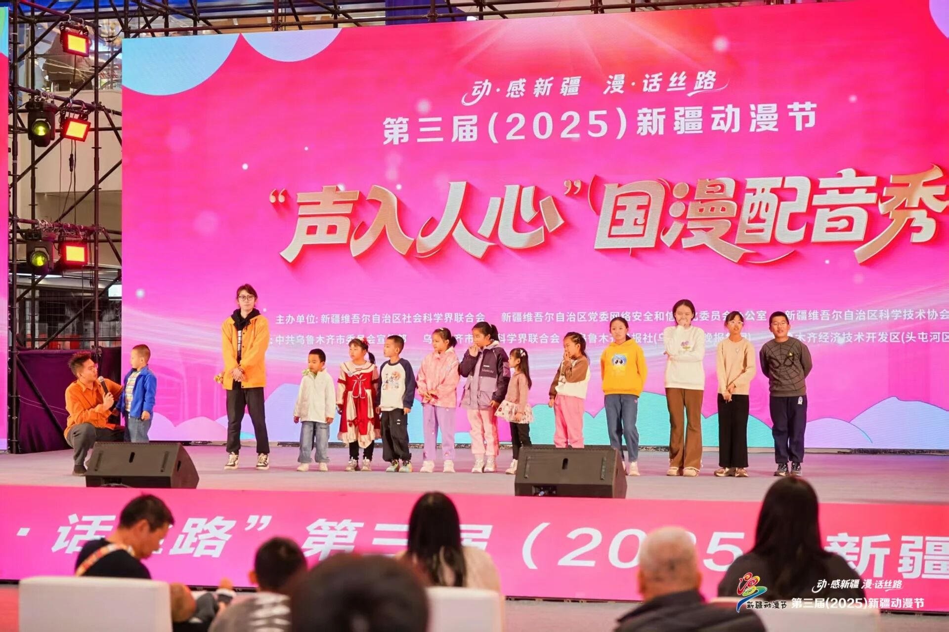 活动现场还洋溢着青少年的热情。互动环节中,孩子们踊跃登台,在新疆艺术学院学子的专业指导下尝试动漫角色配音。稚嫩却充满真挚的声音,既展现了新一代对动漫与配音艺术的热爱,也让现场充满童真与欢乐,成为动漫节里温暖的“青春注脚”。